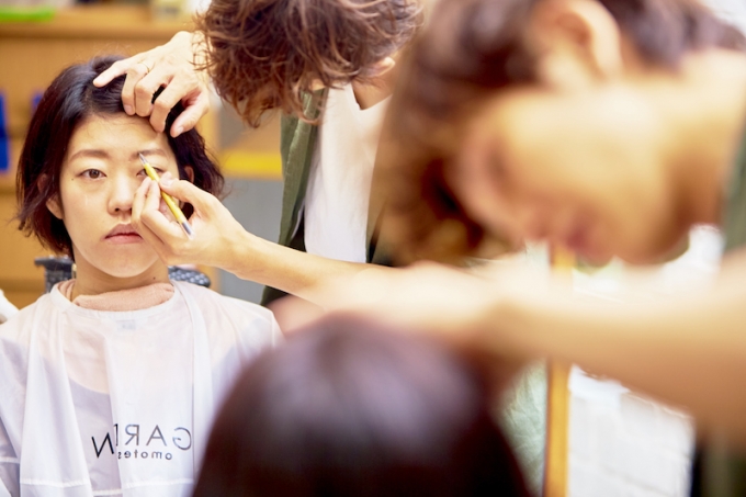 『メイクに関しては男性から言われることを嫌がる人も多いので、さじ加減は必要ですが、前髪を切った人、おでこが出るようなスタイルにした時は、「眉毛足した方がいいよ」とアドバイスします。ヘアと共に、顔の全体のバランスを決める大事な役割を眉毛が担っているので、色や描き方を教えたりもすることもあります』