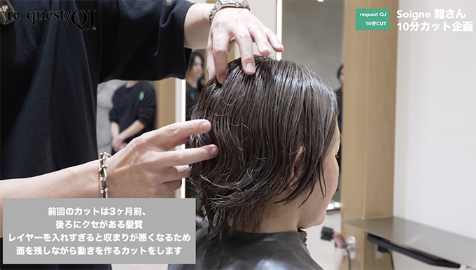 正統派カットサロンで経験を積み、現在は新ブランドサロン「soigne(ソワネ)」の代表を務める龍正也さん。ひたすらカットに向き合い、技術を磨き続けてきたからこそ、大人女性から厚い支持を獲得しています。今回は、上品で美しいシルエットを叶える“大人ショート”のテクニックを、わずか10分に凝縮。細部まで計算された所作の数々は見応え十分です。ぜひ動画でもチェックしてみてください。