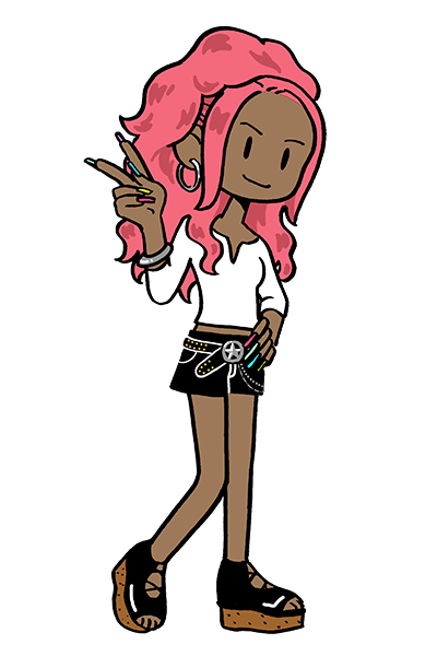 派手なイメージには変わりはないが、ヘアカラーの進化により90年代よりヘアカラーがあざやかに。またネイルも長くなっている。