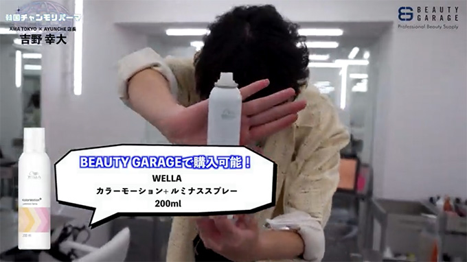 スタイリングしていきます。巻く前はルミナススプレーを使っています。