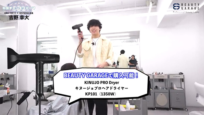 遠赤外線の機能がついているので、速乾性が高いんです。実際に店販としてお買い求めいただける商品で、購入された方からの反応もすごくいいです。コンパクトなのに風量もあり、キレイに乾かせます。パーマをかけた部分は、少し上から抑えるような感じでドライします。