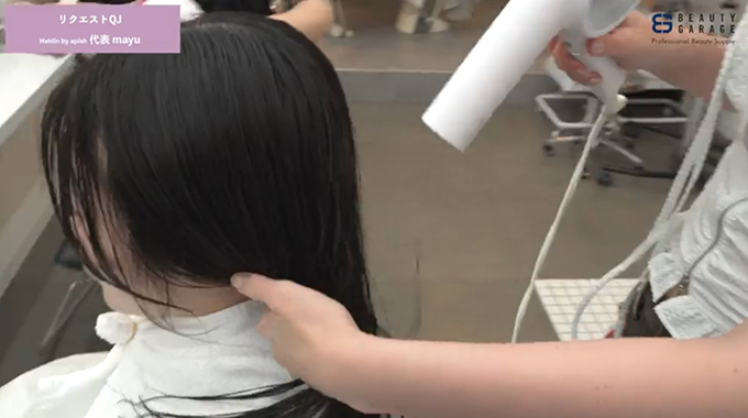 水洗後、巻く前に水けを飛ばします。この時、オーバードライするとパーマの効果が半減するので要注意。