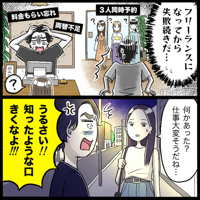 そんな日の夜、彼女とデート中に「なんかあった? 仕事大変そうだね?」と心配して声をかけてくれた彼女に、自分は「うるさい! 知ったような口をきくな!」と暴言を吐いてしまったんです。