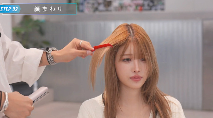 STEP2:顔まわりのレイヤーに合わせてアイロンを通していく