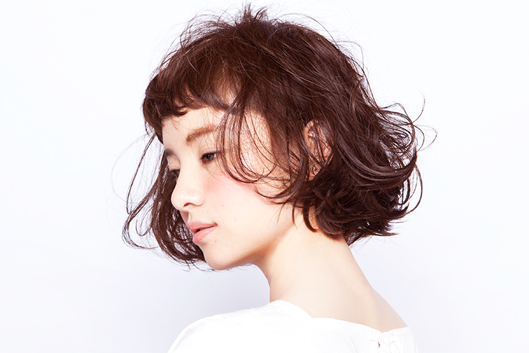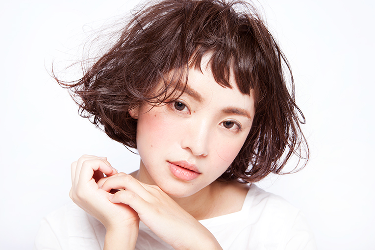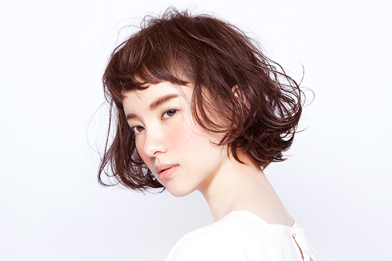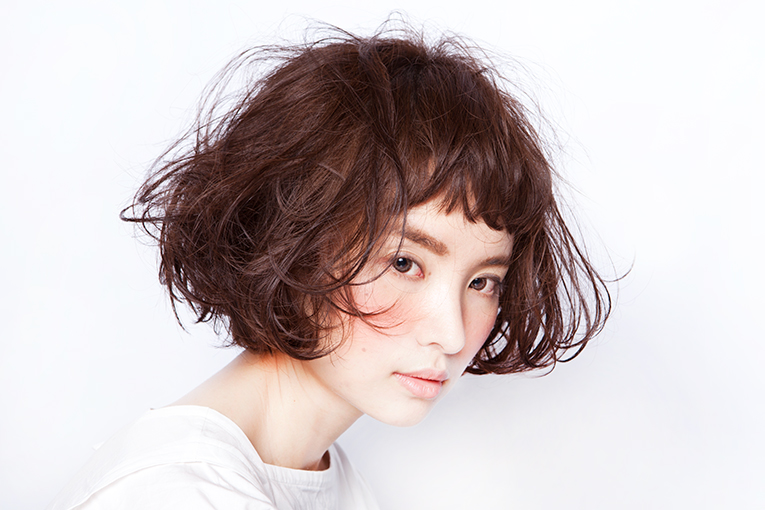 思い切ってカットしたショートバング前髪と、髪に優しい薬剤でかけた柔らかいけど弾力のあるカールがコラボしたボブは、甘さと辛さが絶妙にミックス。ニットやファーなどのボリューミーな甘めアイテムに、レザージャケットやデニムを合わせて、ファッションも甘辛ミックスに仕上げるとおしゃれ!