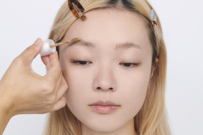 1.ハイトーンのアイブロウマスカラで、顔周りを明るくする