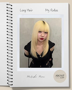 ロングヘアはケアがちょっと大変だったり、乾かすのに時間がかかったりしますが、その分きれいに伸びてくるとすごく嬉しいです。巻いたりまとめたりするだけで雰囲気が変わるので、アレンジを楽しめるのもロングヘアの魅力だと思います。私がこだわっているのは、毛先まできれいに見えること。パサつかないようにケアしたり、定期的に毛先を整えたりしています。ロングヘアはすぐに完成するものではないですが、少しずつ伸ばしていく過程も楽しいです。これからロングヘアを目指す人は、無理せず自分のペースで髪を育てる感じで楽しんでほしいなと思います。