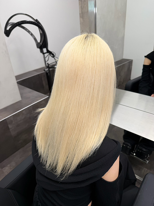 髪の毛は濡れてる時が1番ダメージを受けるため、自分はとにかく爆速で乾かします。ドライヤーも時間をかけたくないので、タオルドライを本気でやります。タオル2枚は必須ですね(笑)。ロングでハイトーンだと乾かすのが大変そうとよく言われるのですが、タオルドライをちゃんとしてあげると案外10分弱で乾いてくれます。ドライヤー難民の方はドライヤーを変える前にまずこれを絶対やってほしいです。ドライ後は自分はくせ毛で広がるので、ラディアントのストレートアイロンでストレートにしてから寝ます。
