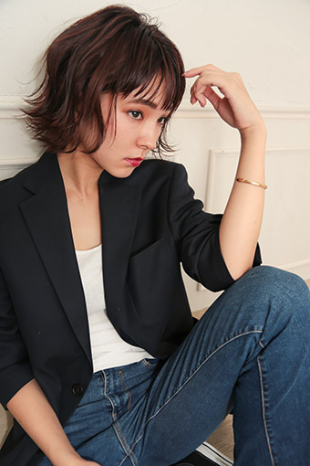 ハイカジュアルなマニッシュファッションに合わせて欲しい、ハンサム&クールなボブスタイルです。あえての切りっぱなしラインがポイントです。全体にシアバターをなじませたあと、毛先が外ハネになるように根元をつぶしながらスタイリングすると、トレンド感のある3Dカジュアルスタイルに仕上がります。