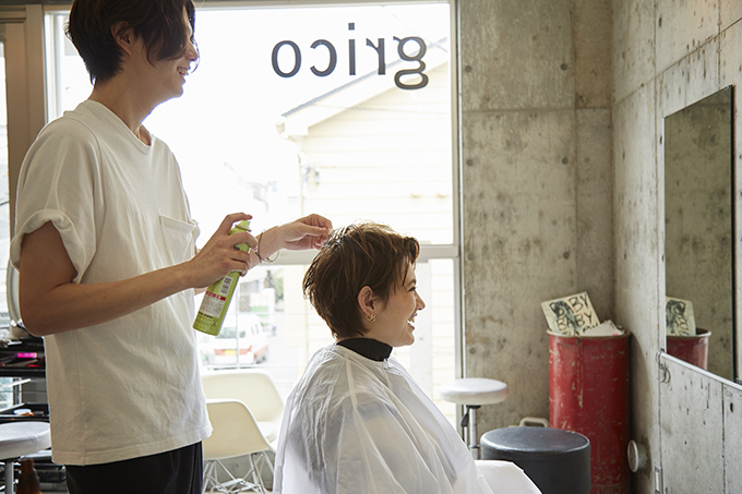 エザキさん「お客さまがハンドブローで、スタイリングしても表情が出るようなカットをするので、自身でやられても同じようなスタイルが再現できますよ」