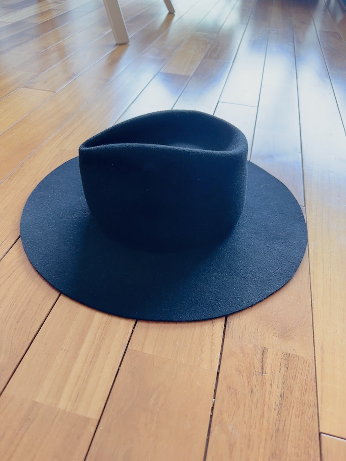 CA4LAでオーダーしているラビットファーのハット。バランス、頭のフィット感、素材の軽さやハリ感など、すべてが理想です。僕の場合、ハットは1日中かぶります。なので、頭が痛くならないようにフィットさせるためと、既製品にはないつばの広いハットが欲しかったのでオーダーしたんです。