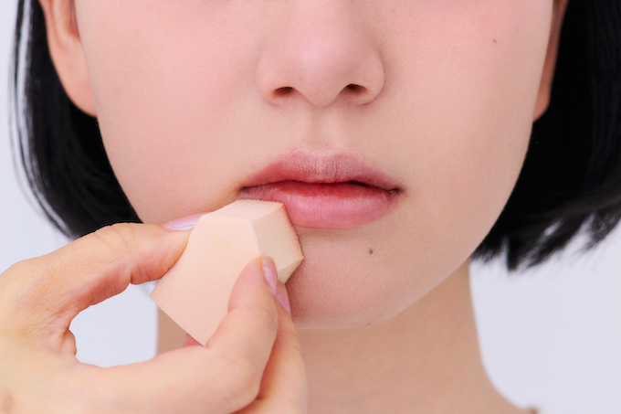 コンシーラーでリップラインをぼかして、唇の存在感を一度リセットする。