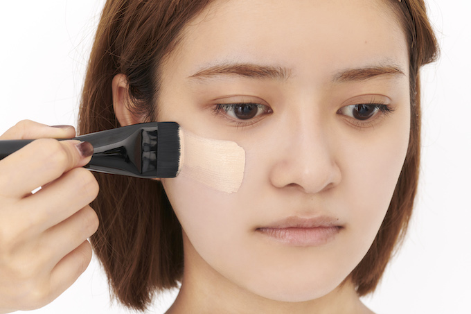 1.リキッドファンデをブラシでサッと塗る