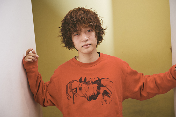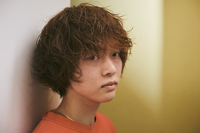 ナードヘアで攻めるには、顔立ちやファッションと馴染む質感作りが重要。顔まわりは切り込んで、内に入る毛流れを演出しています。またトップには動きが出るようにレイヤーを入れることで、クセを生かしながらマッシュのフォルムを再現しました。