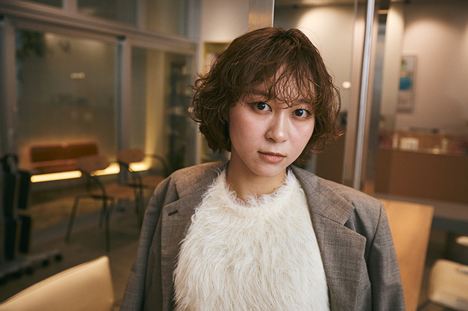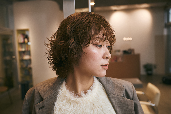 レイヤーをしっかり入れることで、ゆるめパーマでも動きが出ます。デザインのテーマは「フラクタル・フロー」。規則性のあるカールとレイヤーが重なることで生まれるランダム感が狙いです。さらにショートバングで自分らしさとトレンド感もプラスしました。