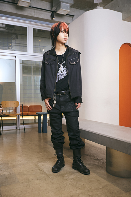 黒をベースに、重くなりすぎないデザインカラーで自分らしさをプラス。あえて規則性のないデザインを配置することで、ワイルド&クールな雰囲気にしています。無造作でナチュラルな毛流れと、顔立ちに合わせたレングス設定がこだわりポイントです。