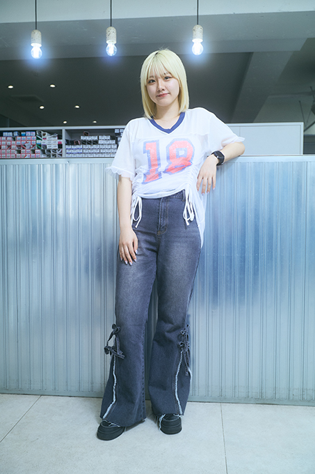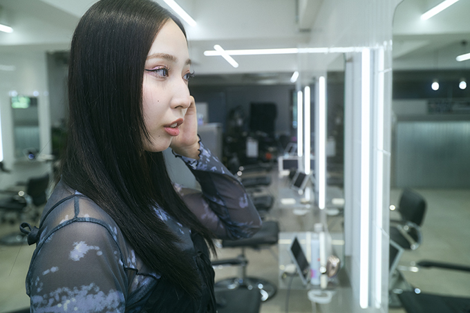 実はブリーチ歴6回なので、全力でヘアケアしています。柔らかいツヤ感が表現できるよう、軽めなテクスチャーの艶出しセット剤を使用。顔まわりにはレイヤーを入れているので、ストレートでも、ゆる巻きでも決まります。