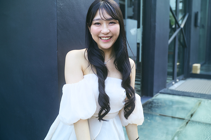 ブリーチなしでも明るいブラウンカラーが再現できるんです。サロンワークでヘアカラーを提案する際は、その判断基準として自分の髪色を確認してもらっています。ザクザクと顔まわりにレイヤーを入れ、内巻きで仕上げました。