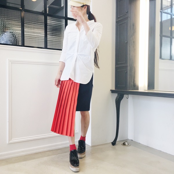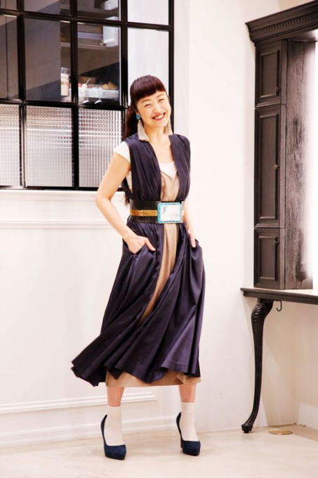 足を隠したら太くなるし、ウエストを緩いゴムにしたら体も緩んできちゃう。ぺったんこのスニーカーを履いたらラクだけど、テンションは上がらない。私はラクな服より、気分があがる服を着たい。特別なダイエットはしていないけれど、好きな服を好きなように着ることが、ダイエットと同じような効果につながっているんじゃないかと思います。体に服を合わせるんじゃなくて、服に体が合ってくるような感覚ですね。