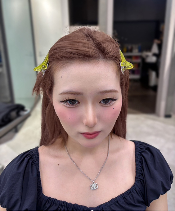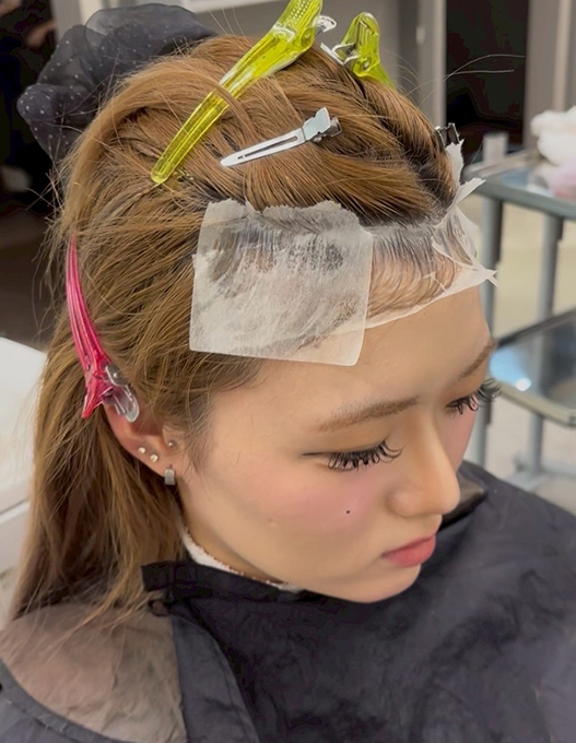 パーマの後は、ドライカットで額に自然な産毛の毛量を調整して完成。産毛が加わることで、丸みのある立体的な額になり、イノセントな雰囲気に。