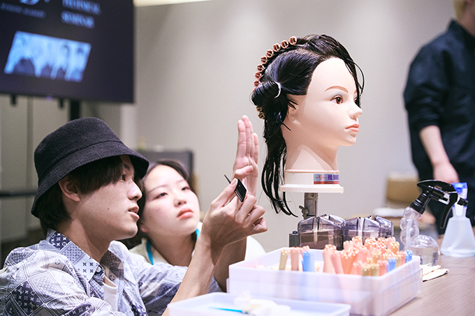 この日のセミナーを受講したのは、WD+公式インスタグラム上から応募した8名の美容学校生で全員1年生。埼玉、神奈川、千葉から片道1時間以上かけて参加した人も。今回はWD+のメンバー5人が講師として登壇するだけに、マンツーマンに近い状態で指導が受けられる贅沢な機会となりました。