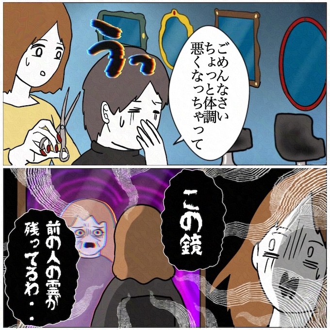日々向き合っているセット面の鏡に、以前使っていた人の霊が乗り移っていたのでしょうか…。その後、オーナーにお願いして鏡を取り替えてもらうことになりましたが、その鏡を捨てたことで不吉なことが起きたらどうしようと不安でいっぱいでした。鏡は新品を買ったほうがいいのかもしれません…。