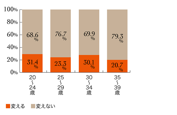 まずは、20代〜30代の女性が、どれくらいの頻度で美容室を変えるのかリサーチ。