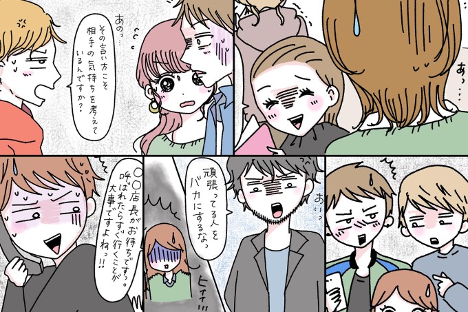 とても忙しかったある日の反省会。先輩はイライラしていたのか、「営業をスムーズに行うための気遣いが足りない!」「相手の気持ちを考えた行動をしなさい!」といつものように高圧的に厳しく言ってきました。そのとき思わず「その言い方も相手の気持ちを考えて言っているものですか?」と言ってしまったんです。
