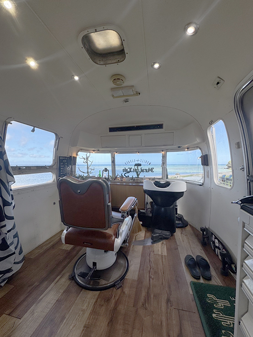 5年半お世話になりました。沖縄の人たちや環境を知るという意味では、すごくいい経験になりました。40歳でお店をもちたいという目標があったので、3年目に開業できるように土地を探していたんですけど、全然見つからなくて。土地を持っている方たちは、みなさん子孫に渡していくのが常なので、他人に渡すということをほとんどしないんですね。販売に出ている土地も、資金力では企業には到底かないませんでした。どうしようかな…と考えていたときに、たまたま海外の移動式理容室の記事を見たんです。これならできるかも?って。