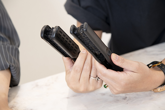 ゆうだい:ある女性スタッフは、デンマンのツインブラシは開いた時の角度が狭いので、手が小さい人には持ちやすいと言います。またアイビルの方はブラシに通気穴があるせいか、ブロー時の熱伝導の良さを感じています。