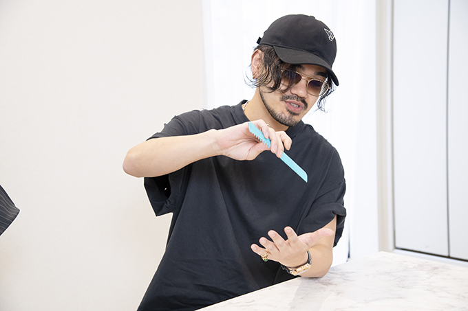 三瓶:僕自身がファイズコームを昔から愛用していて、ファイズジャパンさんに限定カラーを作らせてもらったほど(笑)。素早くパネルをとれるし、滑りにくし、これ1本でカット中のいろんな場面で活躍してくれる。カット好きな美容師さんにおすすめしたいコームです!