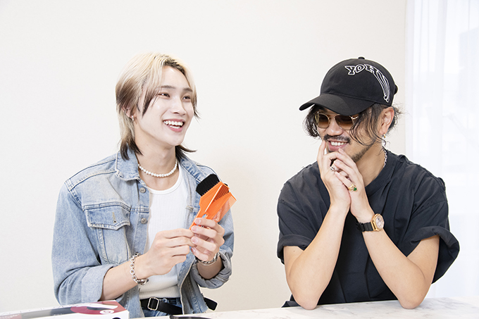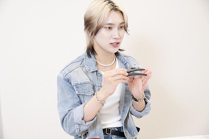 三瓶:いよいよ最後に登場するのは星那くん。華やかな存在感と抜群のセンスで注目を集めるデザインカラーの名手です。実際のサロンワークでは、複雑なカラー履歴を持つ髪でも思い通りに仕上げてしまうテクニックの持ち主。そんな星那くんが愛用する、こだわりのヘアカラーアイテムを紹介してもらいましょう。