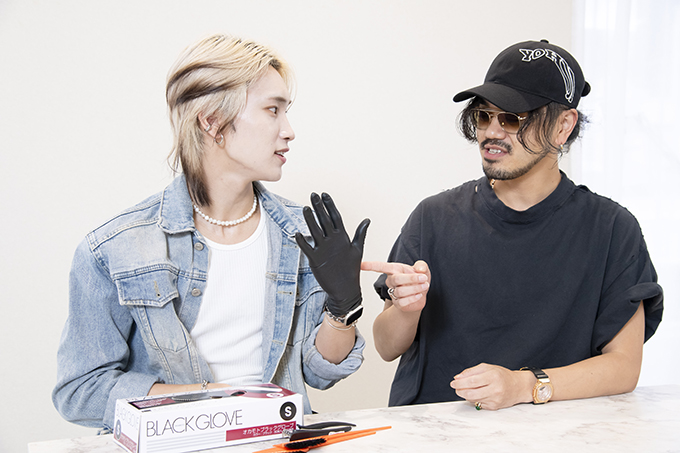 星那:続いても、カラー施術の必須アイテム、グローブです。あえてSサイズを使うのが僕のこだわりです。ピタッと密着してくれる上に、着脱もスムーズ。耐久性も抜群です。