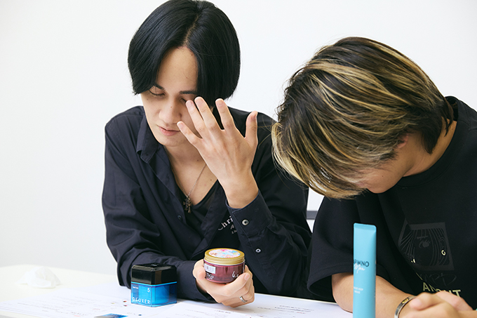 森:デューサーはタイプ違いで9種類展開しているんだけど、5Nのハードワックスはマットな質感で、パーマヘアのセット向き。のすけくんの場合、ヘアチェンジしたら出番があるかもね。