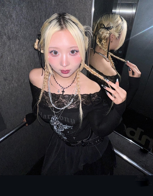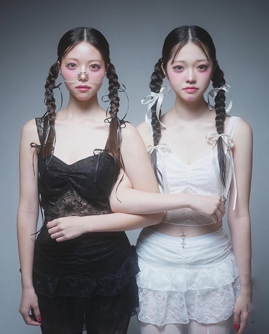2人のモデルが持つ異なる魅力を、リボンの長さやアイテムのバランスで調和させ、バレエコア×miu系穿搭(MIU系コーデ)の世界観へと昇華しました。個性と統一感の共存をテーマに、それぞれを白と黒のテーマカラーに分けて表現しています。