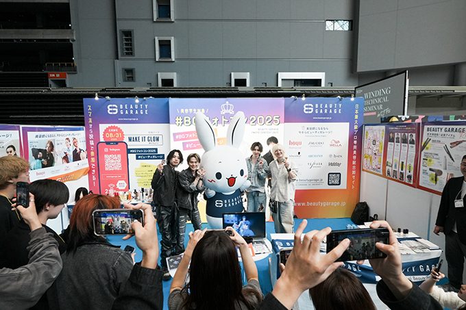 ステージ終了後、4人はビューティガレージのブースへと移動。#BGフォトコン2025 を記念して作られたオリジナルステッカーを配布しました。