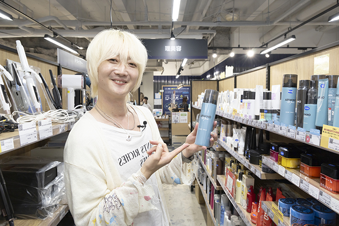 店内に一歩足を踏み入れると、サロンワークに欠かせない定番アイテムから最新のトレンド商材までがずらり。理美容はもちろん、アイ、エステ、ネイルまで幅広いアイテムが並び、美容師だけでなくアイリストやネイリストなど、美容に携わるすべての人から支持を集めています。
