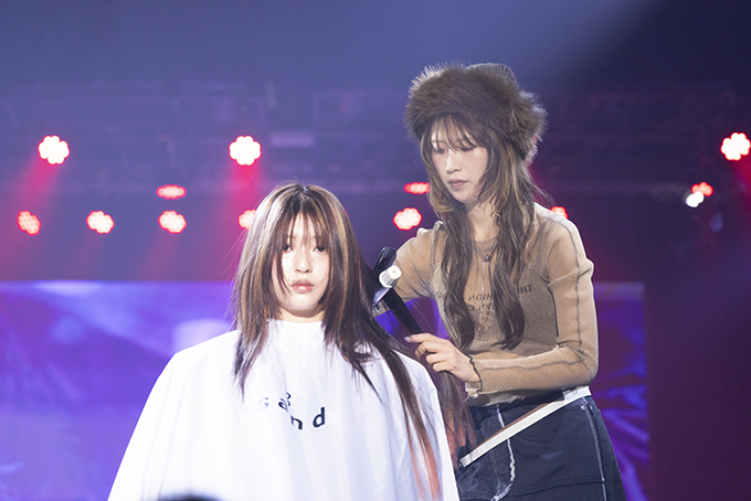 2人は「ある食べ物」をモチーフにデザインを発想。白鳥さんは多層のデザインカラーを施したモデルをレイヤーで表現。へぎさんはランダムなカールを生かした重めボブにカット。それぞれ個性は異なるのに、どこか共通する先進的なエッセンスが感じられ、sandらしさが凝縮されたステージでした。