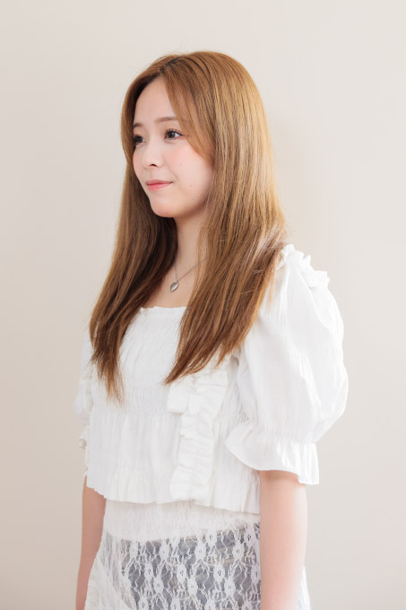 大人っぽいロングヘア。広がりやすいクセがあるので、伸ばしているのだとか。