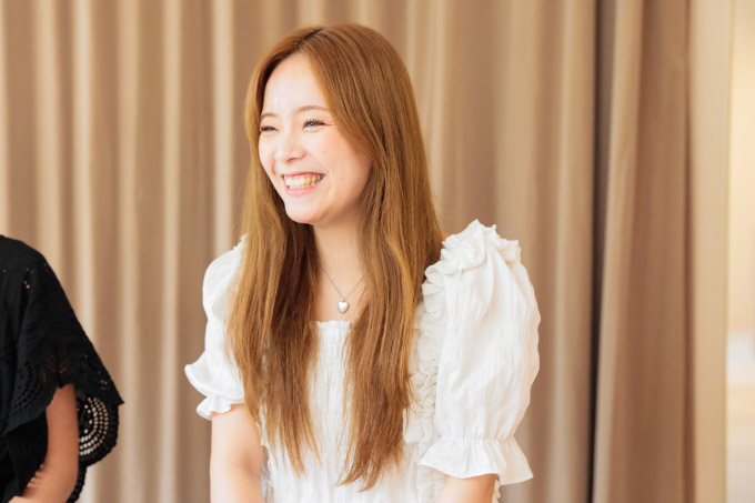 :彼女には、入社前からアルバイトで来てもらっていたんですけど、すごく存在感というかオーラがあるんですよ。お客さまにもすぐに覚えてもらえてスター性があるんです。入社してからもシャンプーやマッサージのお客さまからの評価がとても高くて、私は将来たくさんのファンがつくんだろうなと思いました。加えて、先輩に対しても臆さずに自分の意見をしっかり言える強さも持っていますね。