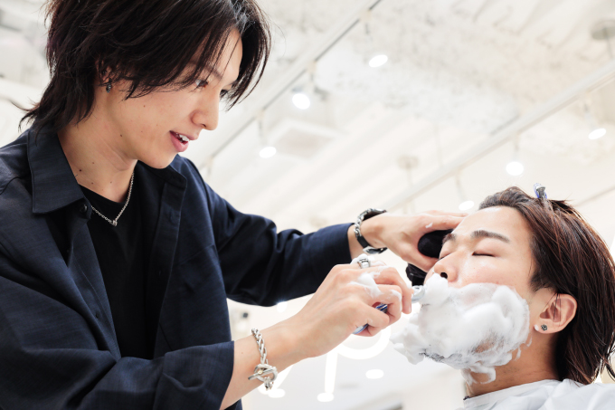 カットの前により清涼感を出すためにまさかのヒゲ剃りスタート!