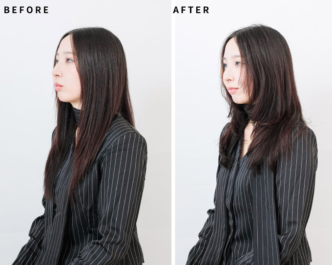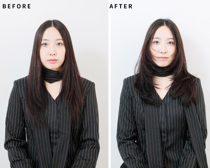 hiro:めっちゃいい感じで私に似合うレイヤースタイルに仕上がって嬉しいです! 顔周りもいいですね!