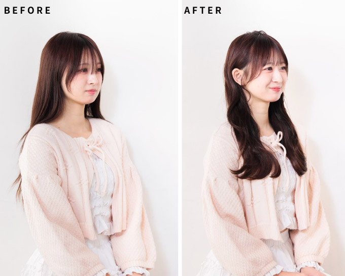 かわいさを更新する渉さんのマジックと、「もっと学びたい」と飛び込んできた結菜さんのまっすぐな想い。この二つが重なって生まれた今回の“アイドル風ガーリースタイル”には、挑戦する人を照らす光のような、前向きなエネルギーがありました。