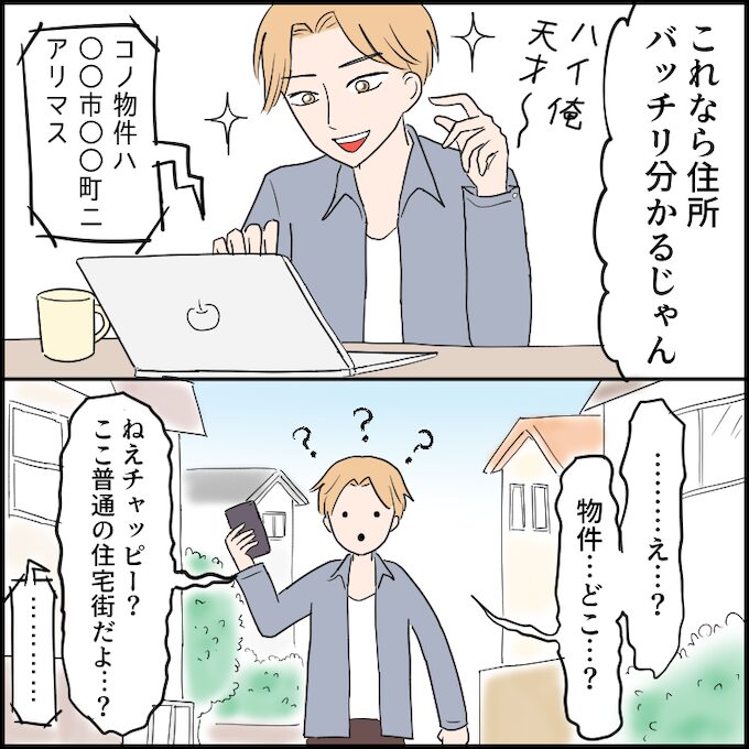 さすがチャッピー!もう不動産サイトいらないじゃん!とテンションは爆上がり。そのまま私は、教えられた住所へ直行しました。……が、探しても探しても、物件がない。通りを往復し、路地に入り、裏道まで全部チェック。それでも影も形も見当たりません。完全に不審者です。