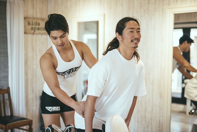 松浦:営業後にジムで1時間30分ほど鍛えたり、走ったり。休日は波がいいとサーフィンやってますね。普段も階段を使うようにしてます。サロンの中だと、シャンプー台の天井に指がちょうど入る溝があるんですけど、ぶら下がりながら移動したり、懸垂したりしています。