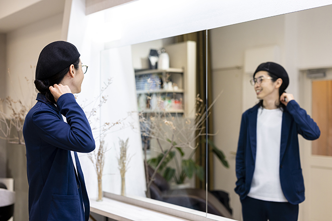 前職時代は30〜40代が多かったので、初めのうちはそれに合わせて投稿していたんです。でも出店したタイミングで忙しくなって、一度YouTubeを休んだ時期があったんですね。そのあと再開したら、再生回数が思ったほど伸びなくなってしまって。とりあえず続けてみようと思って取り組んでいたんですけど、あるとき新規の60代のお客さまにモデルをお願いしたら、その投稿がバズったんです。一気に100万回超えになって、びっくりしましたね。そのあと、またその方と同世代のスタイルを投稿したら、またバズったんですよ。