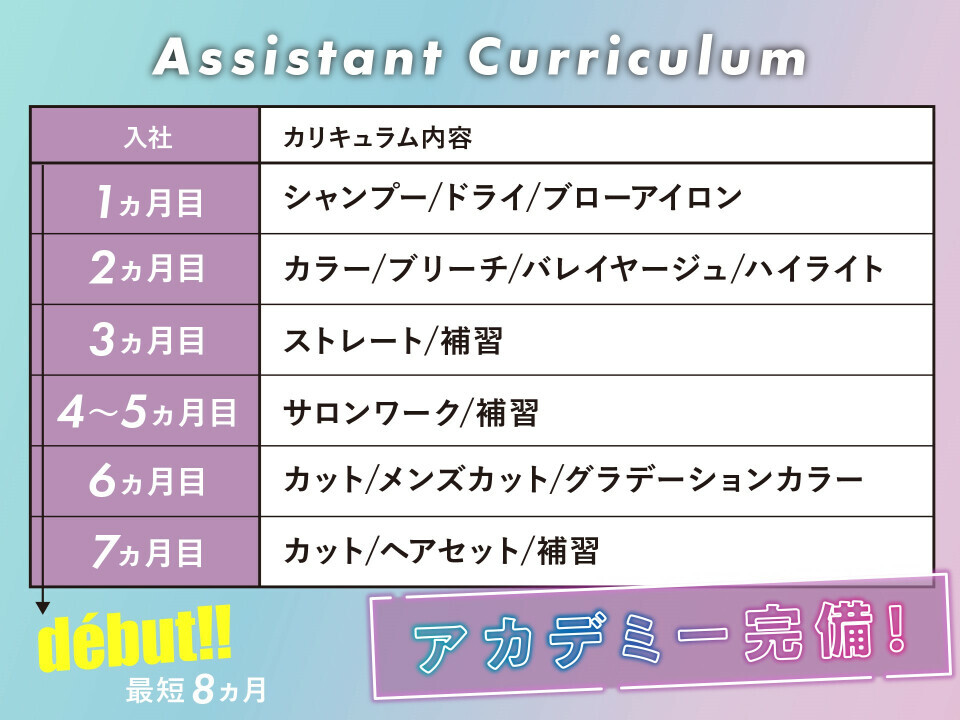 スタイリストデビューまでの道のり・・・ 悩まれていませんか? クレドガーデンは、【人柄採用】です🎵 1人1人に合ったカリキュラムを組み、スタイリストデビューまで支えます✨ 🌟1から学びなおしたい方は、アカデミー制度でガッツり学ぶこともできます🌟 ~安心・丁寧に個別指導&個人の進み具合に合わせたカリキュラムで、中途入社アシスタントから半年でのデビュー実績あり!~ 西新井、北千住にて週2~3回の1日練習サロンワークとの両立が可能! 実践を交えて学ぶからこそ、成長が早い! *スケジュール例(平日休み2日) 練習会3日 ↓ 土日サロンワーク2日 クレドガーデンのカラー講習は世界でも実績あり! ■バレイヤージュ ■グラデーションカラー ■デザインカラー ■ハイトーンカラー アシスタントのうちからカラー技術しっかり学べます! スタイリストデビュー後の入客面もご安心ください! デビュー1〜2年で【報酬40万円以上】のスタッフ多数です。 🌟新規150~200名いらっしゃるので、デビューしてからずぐ実践!入客! 🌟続々店舗展開中!チャンスを掴め! ♢社会保険完備 ♢寮完備(お部屋選べます)or家賃補助あり ♢お財布に優しいまかないアリ(ご飯食べ放題♪) 某集客サイト AWARD 5年連続ベストサロンを受賞 完全人柄採用のため、履歴書不要!手ぶらでOK😊 お気軽にお問い合わせください🎵