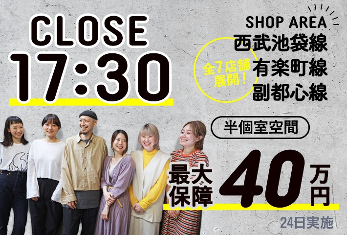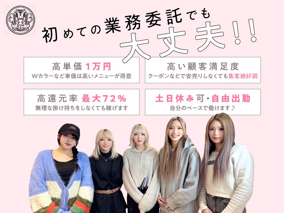 ☆2025年も続々NEWOPEN☆ 9月/10月/11月 新宿 大宮 梅田 《今がチャンス!対象人数限定!》 入社お祝い金10万円(入社後5万円+半年後5万円) ※業務委託でも社会保険加入可◎ 《保障給:ライフスタイルに合わせて選べる♪》 ~あなたはどのタイプ?~ A.保障給月35万円(月23日出勤⇒月7日休み) 顧客がいない…もしくは初めての業務委託で心配… でも入社初月から給与は下げたくない…そんな方におすすめ! B.フリー歩合47%+指名歩合47% 顧客がいない方で、まずは効率よく入客して 指名客をつくりたい方におすすめ! C.フリー歩合40%+指名歩合60% 指名をつくるのに自信がある方や すでに顧客をお持ちの方におすすめ! ※その他、働き方に合わせた保障アリ♪ ※入社3ヶ月 スタッフ満足度95%! 創立12年で全国70店舗以上! 「働きやすさ」×「効率よく稼げる」 勢いがある会社だから入客チャンスもたくさん♪ あなたの時間を有効活用しながら、 効率よく稼ぐことができます! ◆フリー:40~45% ◆指名:47~62%◆客単価7000~1.2万円 ◆1日の平均報酬約23000円 ◆店販手当(10%~20%) ◆材料費・光熱費・広告費・備品・道具類は完全会社負担 ◆平均1日5~7名 《報酬実績》 ☆スタッフ平均報酬45万円☆ 〇23歳女性、弊社でデビュー/スタイリスト歴2年 報酬44万円(1日10h、月10日休み) 〇28歳女性/社歴6ヵ月 報酬33万円(1日7h、月9日休み) 〇27歳男性/社歴1年3ヵ月 報酬57万円(1日12h、月10日休み) 〇31歳男性店長/社歴2年/店長歴5ヶ月 報酬78万円(1日10h、月7日休み)